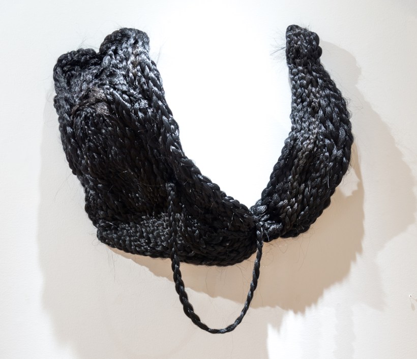untitled, 2017 hair, steel, 48” x 7” x 7”