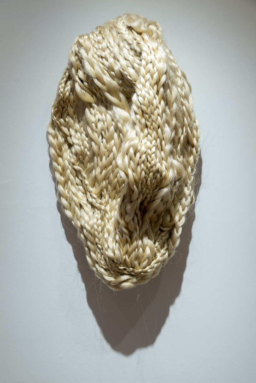 Blonde, Brown, Black, Red, 2017, hair, bobby pins, 10“ x 24” x 7”