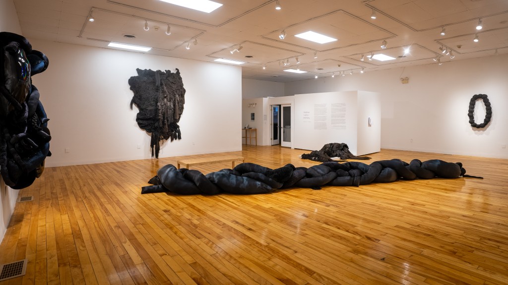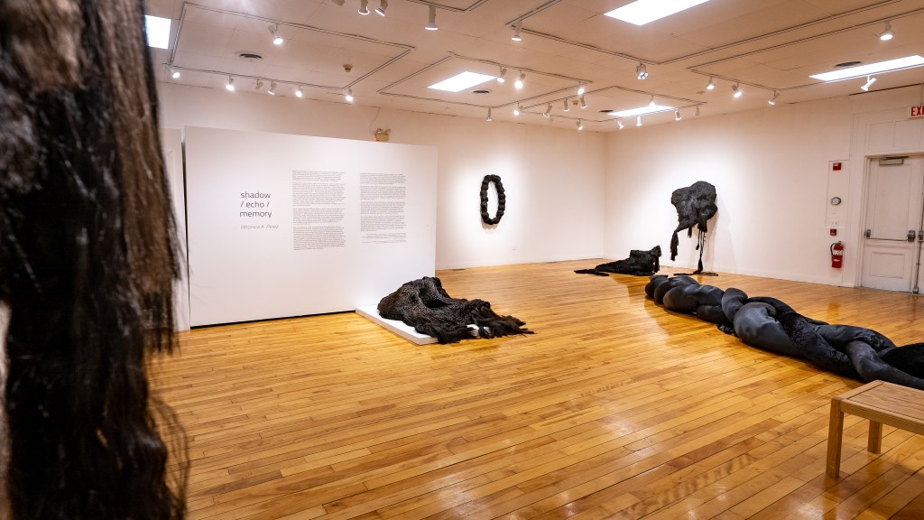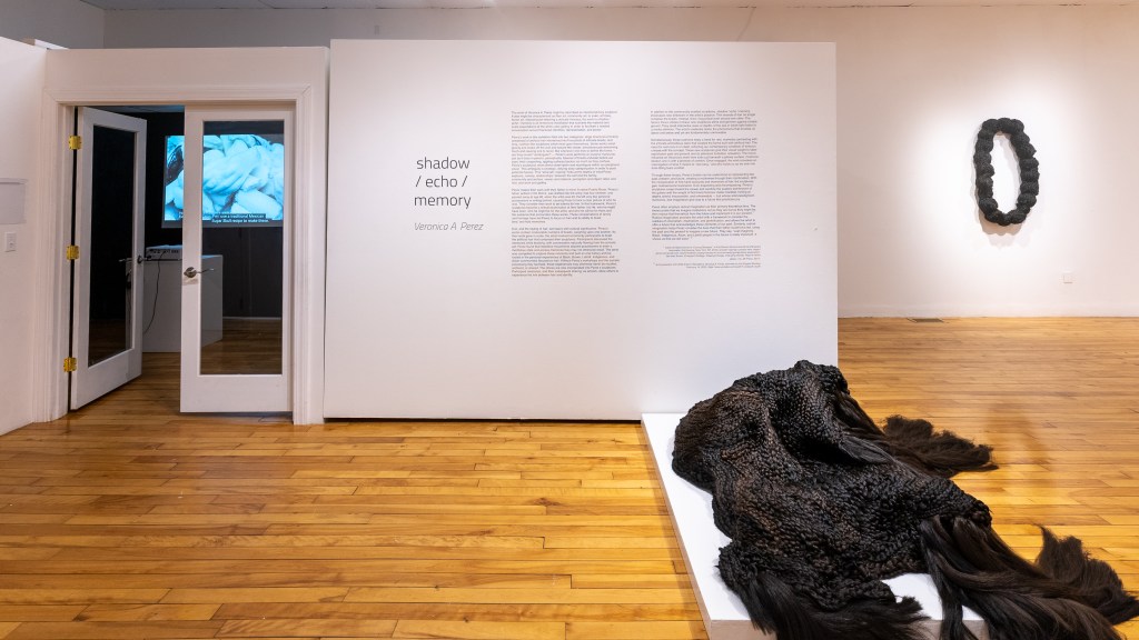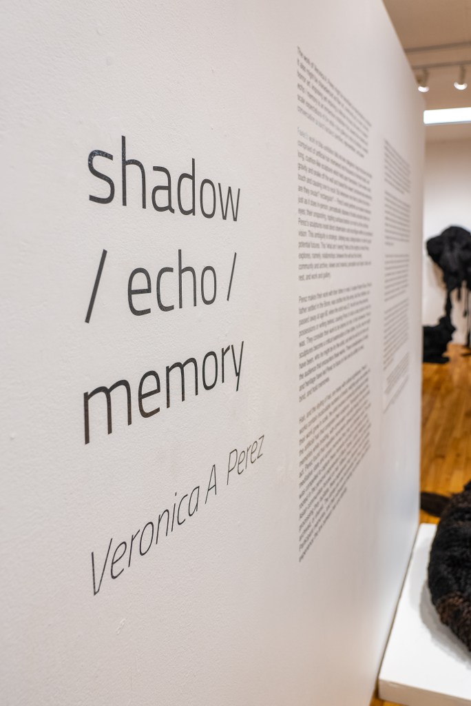 The work of Veronica A. Perez might be described as interdisciplinary sculpture. It also might be characterized as fiber art, community art, or even, at times, horror art. Imposing yet retaining a delicate intricacy, the work in shadow / echo / memory is an immersive installation that subverts the material and scale expectations of the white cube gallery in order to facilitate a needed conversation around fractured identities, representation, and power.